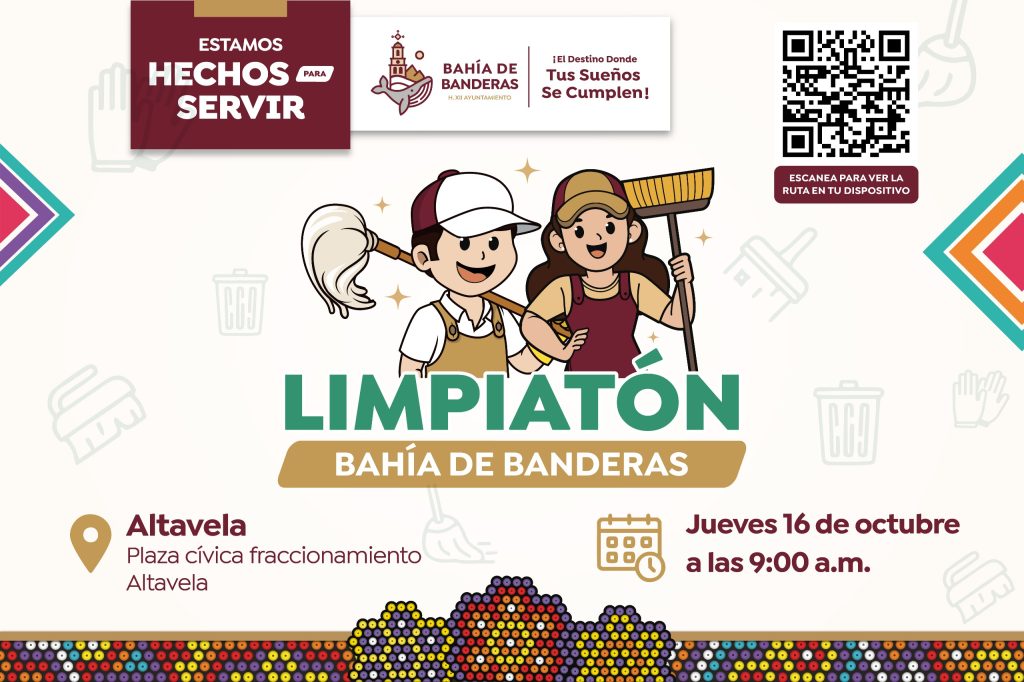 Bahía de Banderas.- Este jueves 16 de octubre, el programa “Limpiatón” del H. XII Ayuntamiento de Bahía de Banderas llegará al Fraccionamiento Altavela, donde vecinos y personal del Ayuntamiento unirán esfuerzos en una jornada de limpieza, descacharrización y abatización.
