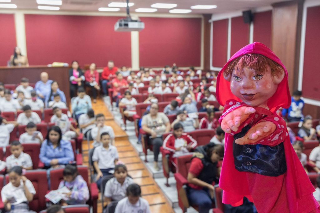 La puesta en escena fue interpretada por psicólogas, psicólogos y trabajadoras sociales del Centro de Convivencia Familiar, quienes, mediante diversos personajes del cuento de Caperucita Roja, promovieron entre niñas y niños el autocuidado, la identificación de riesgos y la importancia de expresar con confianza cualquier situación que vulnere su integridad.