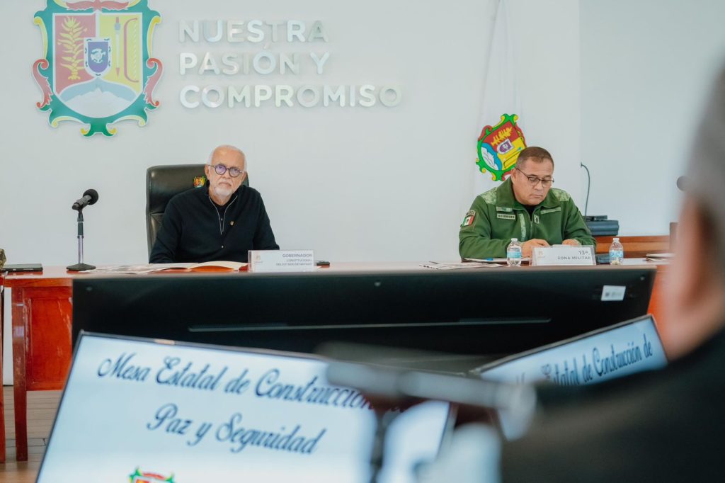 Tepic.- El gobernador del estado, Miguel Ángel Navarro Quintero, encabezó la Mesa Estatal de Construcción de Paz y Seguridad, donde se fortalece de manera permanente la coordinación entre las distintas autoridades, dando seguimiento puntual a resultados concretos que hoy se reflejan en acciones preventivas, operativos conjuntos y una mayor presencia institucional, con el objetivo de salvaguardar la tranquilidad de las familias nayaritas y de quienes visitan la entidad.