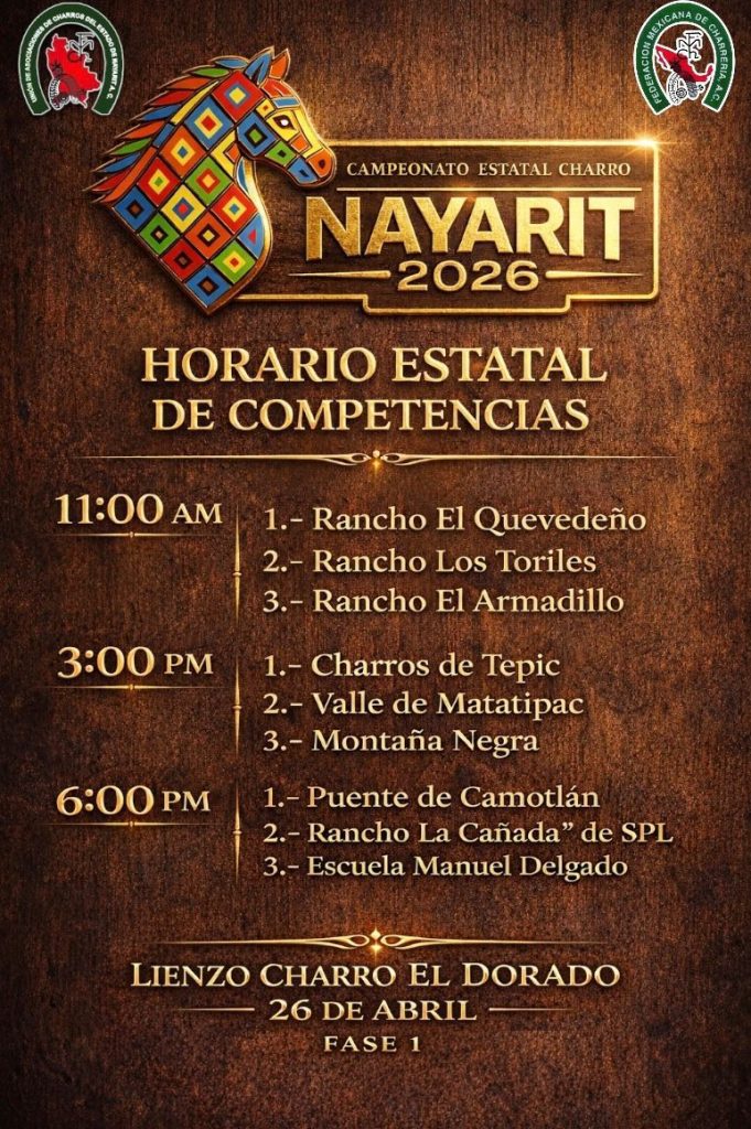 La primera competencia arrancará a las 11:00 horas, acompañada de mariachi; la segunda competencia será a las 15:00 horas con música norteño-banda, y la tercera a las 18:00 horas con banda en vivo. Al término de las actividades se contará con la presentación de un artista sorpresa de nivel internacional.