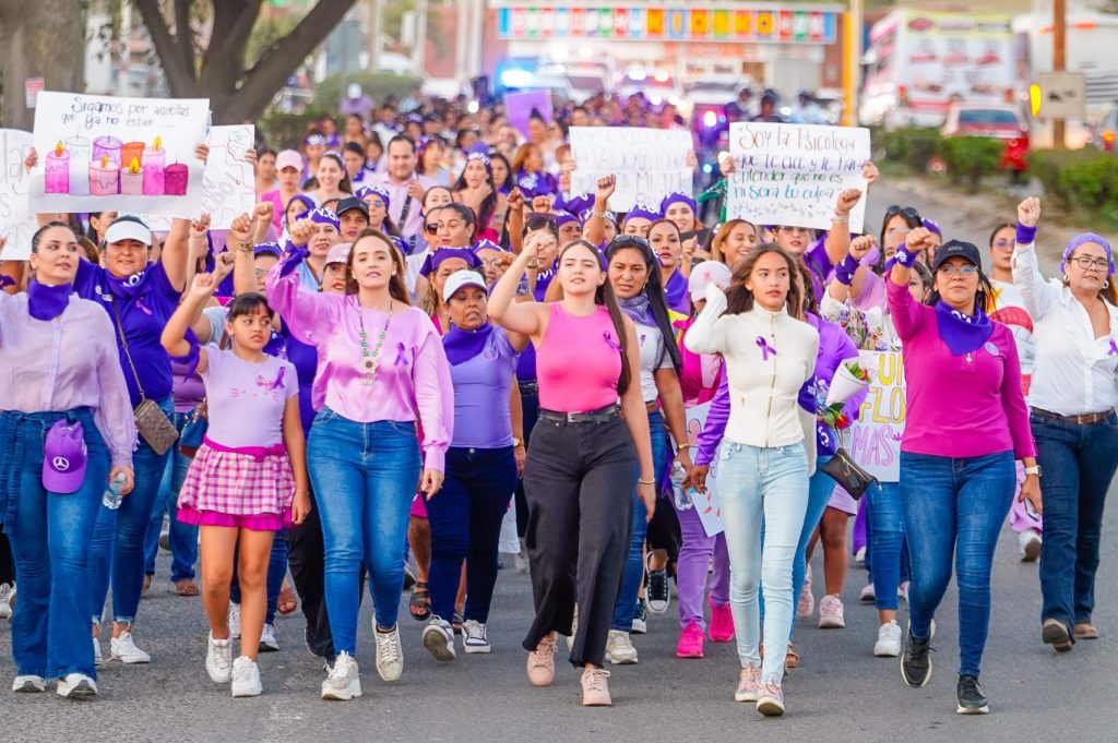 La marcha inició en la plaza pública de El Porvenir y concluyó en el fraccionamiento Palma Real, en San Vicente, donde se llevó a cabo la inauguración de un mural conmemorativo, un símbolo de la lucha y resistencia de las mujeres en el municipio.