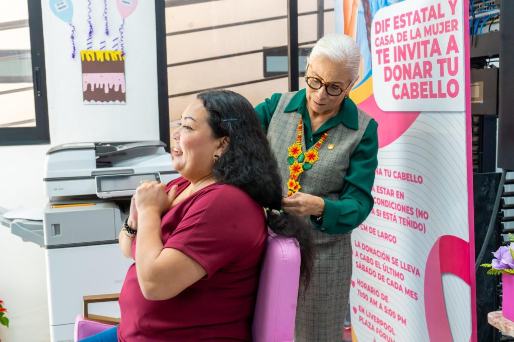 Tepic.- Con el propósito de brindar esperanza y fortalecer la confianza de niñas y mujeres que enfrentan el cáncer, la presidenta del Sistema DIF Nayarit, doctora Beatriz Estrada Martínez, impulsa de manera permanente la campaña de donación de cabello, destinada a la elaboración de pelucas oncológicas artesanales que se entregan gratuitamente a quienes atraviesan este proceso.