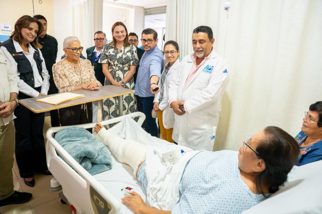 Tepic. – La presidenta del Sistema DIF Nayarit, doctora Beatriz Estrada Martínez, visitó a pacientes que se recuperan de la jornada gratuita de cirugías de rodilla y cadera que se realiza en el Hospital de Especialidades IMSS-Bienestar “Dr. Antonio González Guevara”, en Tepic, donde alrededor de 50 personas de distintos municipios del estado son beneficiadas con estos procedimientos.