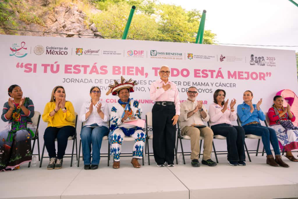 Del Nayar.– Con empatía y cercanía, la presidenta del Sistema DIF Nayarit, doctora Beatriz Estrada Martínez, encabezó en la comunidad de El Colorín, municipio de Del Nayar, una jornada integral de salud, bienestar y capacitación bajo el lema “Si tú estás bien, todo está mejor”, en conmemoración del mes de sensibilización sobre el cáncer de mama. Además, se entregaron sueros antialacrán para prevenir muertes por dicha causa.