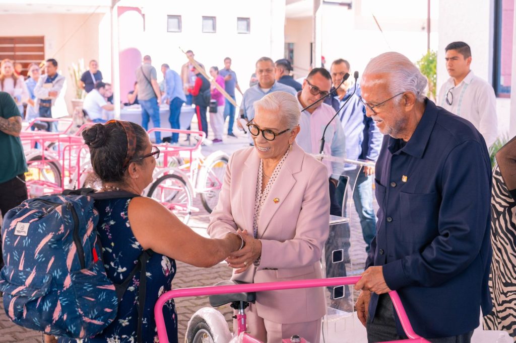 Tepic.- La presidenta del Sistema DIF Nayarit, doctora Beatriz Estrada Martínez, y su esposo, el gobernador del estado, Miguel Ángel Navarro Quintero, realizaron la entrega de triciclos de carga a 130 familias de 18 municipios de la entidad, una acción que fortalece el autoempleo y respalda el esfuerzo diario de quienes buscan generar ingresos propios y mejorar su calidad de vida.