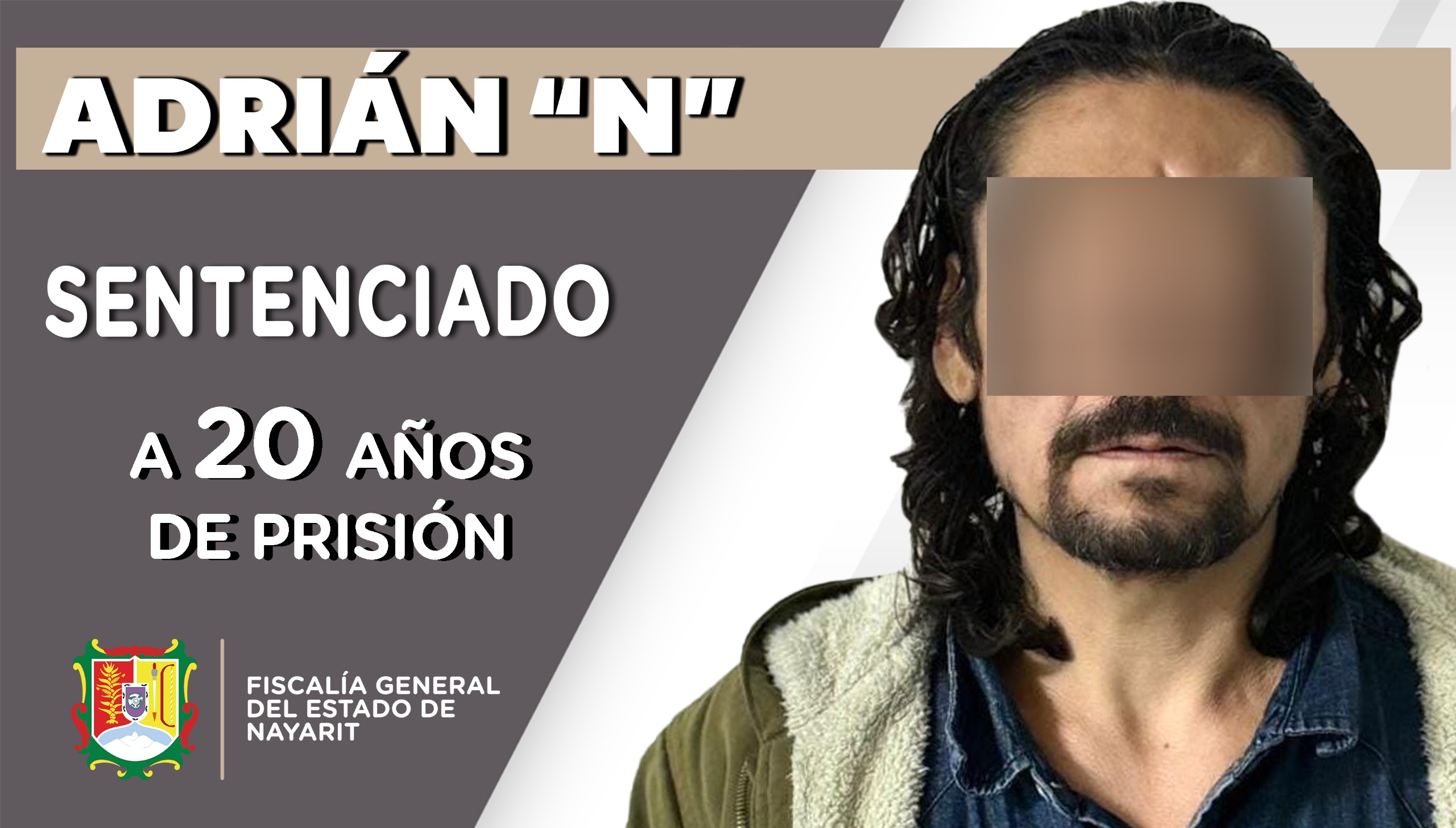 Tepic.- La Fiscalía General del estado de Nayarit informa que un Tribunal de Enjuiciamiento dictó una sentencia de 20 años de prisión contra Adrián “N”, por su responsabilidad en el delito de homicidio calificado.