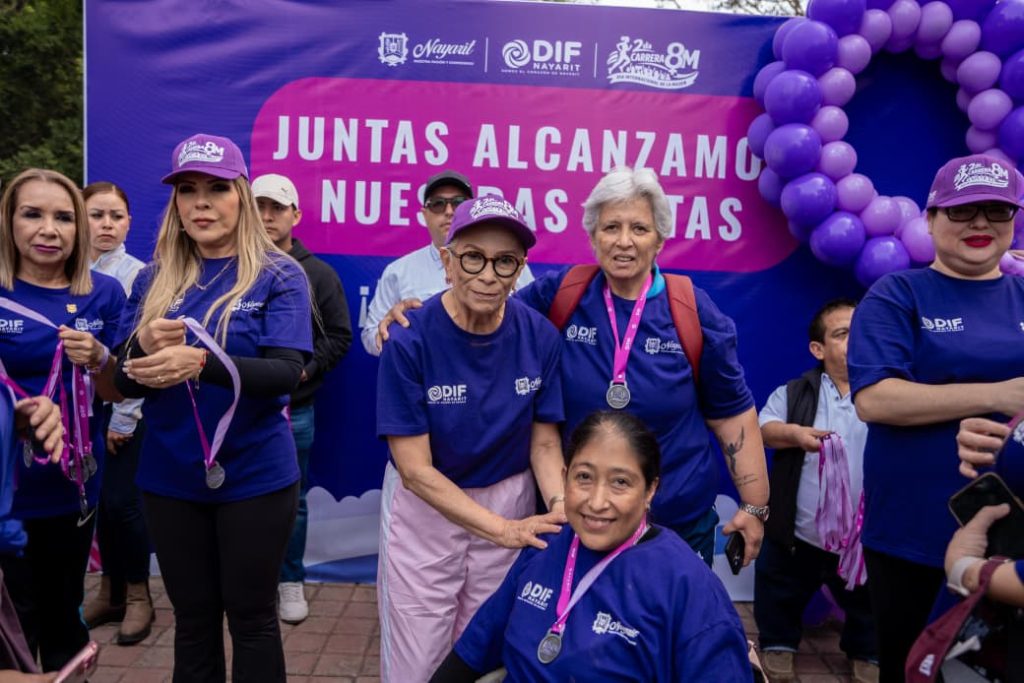 Tepic.- Con gran éxito, más de 2 mil 500 mujeres de todas las edades, demostraron su fuerza y liderazgo en la Segunda Carrera 8M, realizada en el parque La Loma y encabezada por la presidenta del Sistema DIF Nayarit, doctora Beatriz Estrada Martínez.