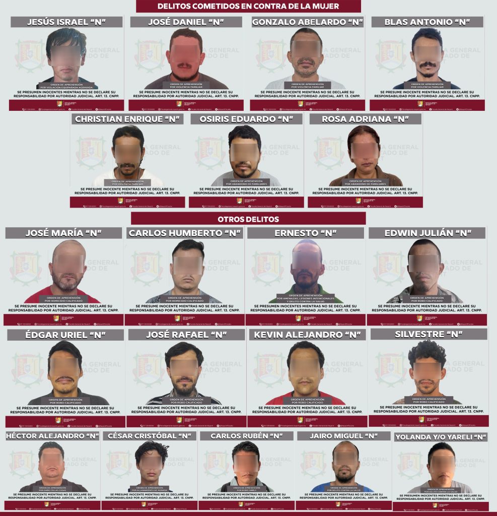 Tepic. – La Fiscalía General del Estado de Nayarit informa que, como parte de las acciones permanentes de investigación y persecución penal, del 2 al 5 de abril fueron ejecutadas 29 órdenes de aprehensión por diversos delitos en distintos municipios de la entidad.