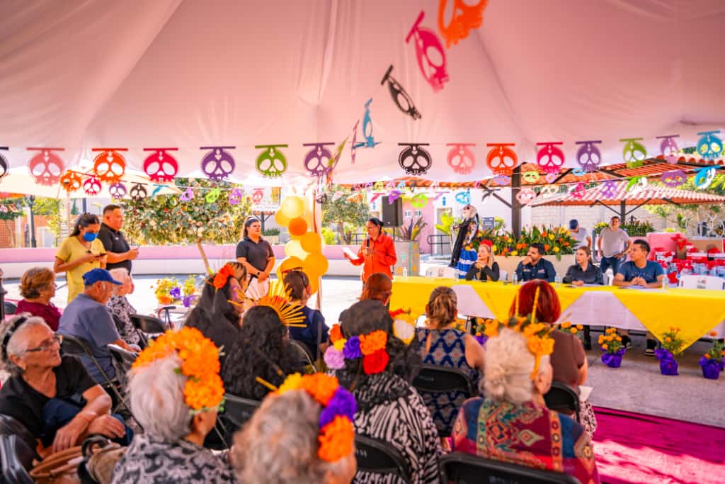 En un ambiente festivo y lleno de emoción, más de 200 abuelas y abuelos provenientes de las Casas de Día de los municipios de Rosamorada, Ruiz, Tuxpan, Santiago Ixcuintla, La Yesca, Santa María del Oro, Compostela y Tepic, mantuvieron vivo el recuerdo de sus seres queridos con presentaciones de altares y calaveritas literarias, además de una colorida pasarela de catrinas y catrines, demostrando su ingenio, entusiasmo y capacidades artísticas; asimismo, su participación fue reconocida con la premiación de los tres primeros lugares en cada categoría.