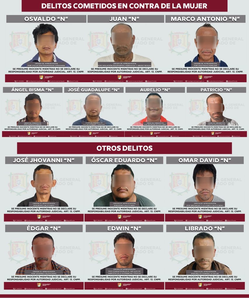 Tepic, Nayarit. – En cumplimiento de mandamientos judiciales emitidos por la autoridad competente, la Fiscalía General del Estado de Nayarit ejecutó, los días 14 y 15 de febrero del presente año, un total de 14 órdenes de aprehensión por diversos ilícitos.