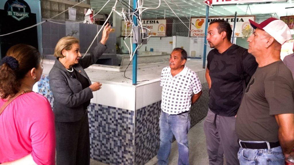 La secretaria, Claudia Raquel Araujo Gómez supervisó los trabajos junto a locatarios, constatando la renovación del sistema eléctrico, labores de pintura, el mantenimiento de cortinas metálicas y la limpieza integral del inmueble.