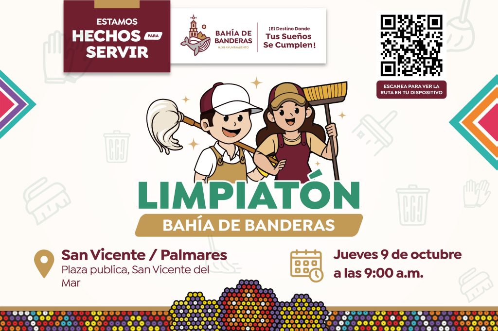 Bahía de Banderas.- El programa «Limpiatón» del H. XII Ayuntamiento de Bahía de Banderas llevará a cabo una nueva jornada de limpieza, descacharrización y abatización esta ocasión en la colonia Palmares y San Vicente del Mar.