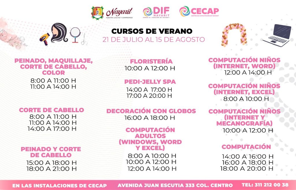Tepic.- El Corazón de Nayarit, a través del CECAP, te invita a formar parte de los Cursos de Verano 2025: espacios donde niñas, niños, adolescentes, jóvenes y personas adultas pueden desarrollar habilidades, descubrir talentos y mejorar su economía.