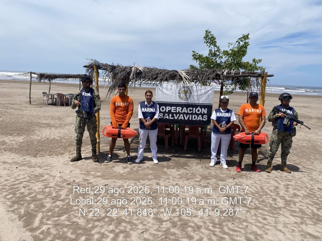 San Blas.- La Secretaría de Marina, a través de la Décima Zona Naval informa que hoy se dio por finalizada la “Operación Salvavidas Verano 2025”, en el marco de la implementación del Plan Marina, la cual tuvo el objetivo de proporcionar seguridad y vigilancia, para resguardar la integridad de los vacacionistas nacionales e internacionales que visitaron los principales destinos turísticos del Estado de Nayarit durante la temporada vacacional, del 11 de julio al 31 de agosto del presente año.
