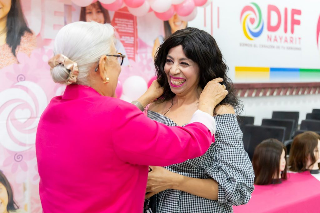 Tepic.- Como parte de un compromiso fijo y solidario con quienes más lo necesitan, la presidenta del Sistema DIF Nayarit, doctora Beatriz Estrada Martínez, encabezó la entrega gratuita de seis pelucas oncológicas artesanales, en beneficio de igual número de mujeres que enfrentan la lucha contra el cáncer.