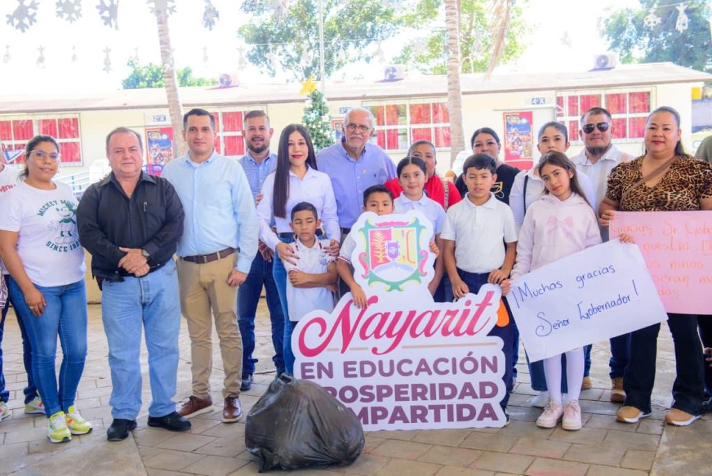 Tepic.- Convencido de que la educación es la base para la transformación social, el gobernador del estado, Miguel Ángel Navarro Quintero, continúa invirtiendo en espacios educativos dignos para la niñez nayarita. Este domingo realizó una gira de trabajo por la localidad de Aquiles Serdán, en el municipio de Xalisco, donde entregó la techumbre en el área de la Plaza Cívica de la Primaria 20 de Noviembre, una obra que permitirá a las y los estudiantes desarrollar sus actividades en mejores condiciones de seguridad y bienestar.