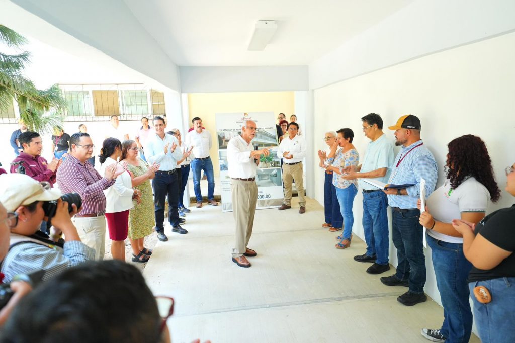 Durante su recorrido, por el municipio, el mandatario entregó las obras recientemente concluidas, las cuales consistieron en la construcción de dos aulas didácticas en la segunda planta y un puente de conexión para la escalera, con el objetivo de mejorar la infraestructura y el servicio educativo en la región.