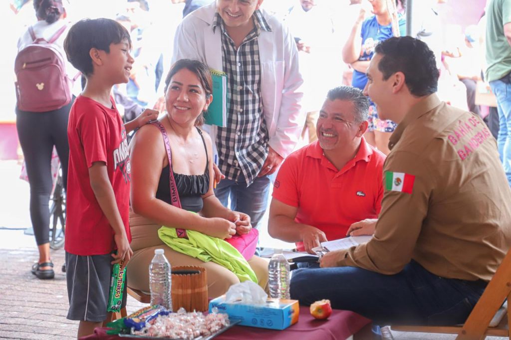 Bahía de Banderas.- El presidente municipal Héctor Santana encabezó este lunes la Audiencia Ciudadana número 44, realizada en la plaza pública de El Porvenir, donde cientos de habitantes acudieron para ser escuchados y atendidos de manera directa por el Gobierno Municipal.
