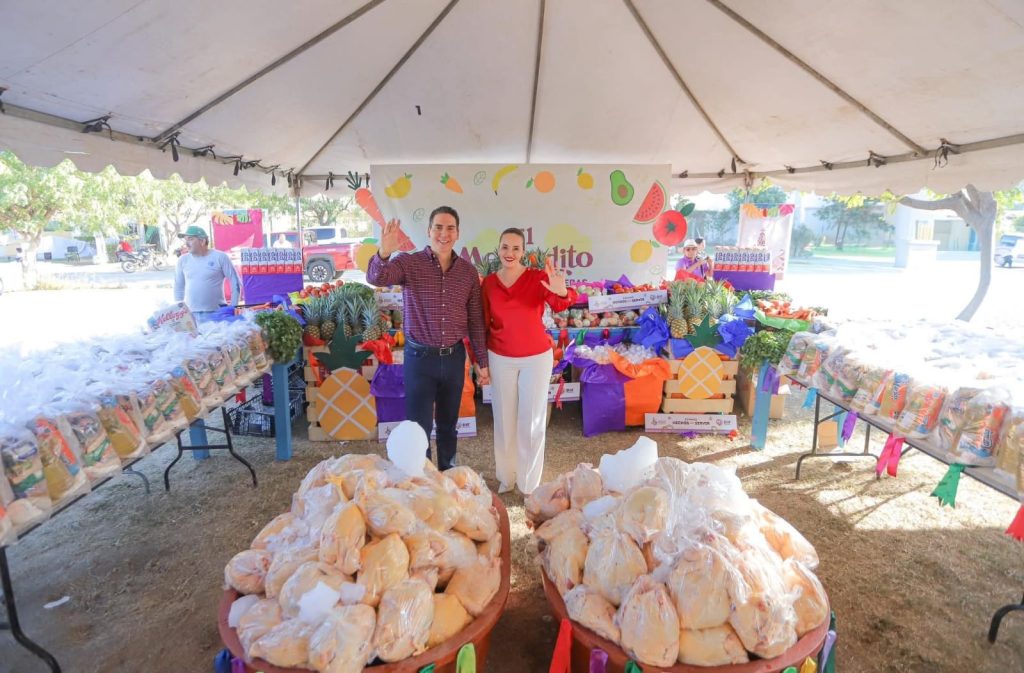 Bahía de Banderas.- El Mercadito llegó al Fraccionamiento Azul Turquesa como parte de las acciones de apoyo social impulsadas por el presidente municipal, Héctor Santana, y la presidenta del Sistema DIF Bahía de Banderas, Margui Zúñiga de Santana.