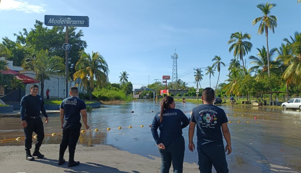 Asimismo, por el pronóstico de oleaje de 3 a 4 metros de altura en costas de Nayarit y Jalisco, mismo que hasta el momento ha generado inundaciones por marea alta en las zonas costeras.