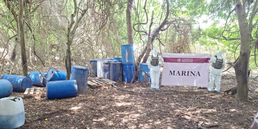 San Blas. – La Secretaría de Marina a través de la Armada de México, por conducto de la Décima Zona Naval, informa que ayer, en coadyuvancia con la Fiscalía General de la República personal naval localizó y neutralizo, químicos líquidos y sólidos, así como equipo empleado presuntamente para la elaboración de estupefacientes, en inmediaciones del poblado de Boca del Asadero en el municipio de San Blas, Nayarit.