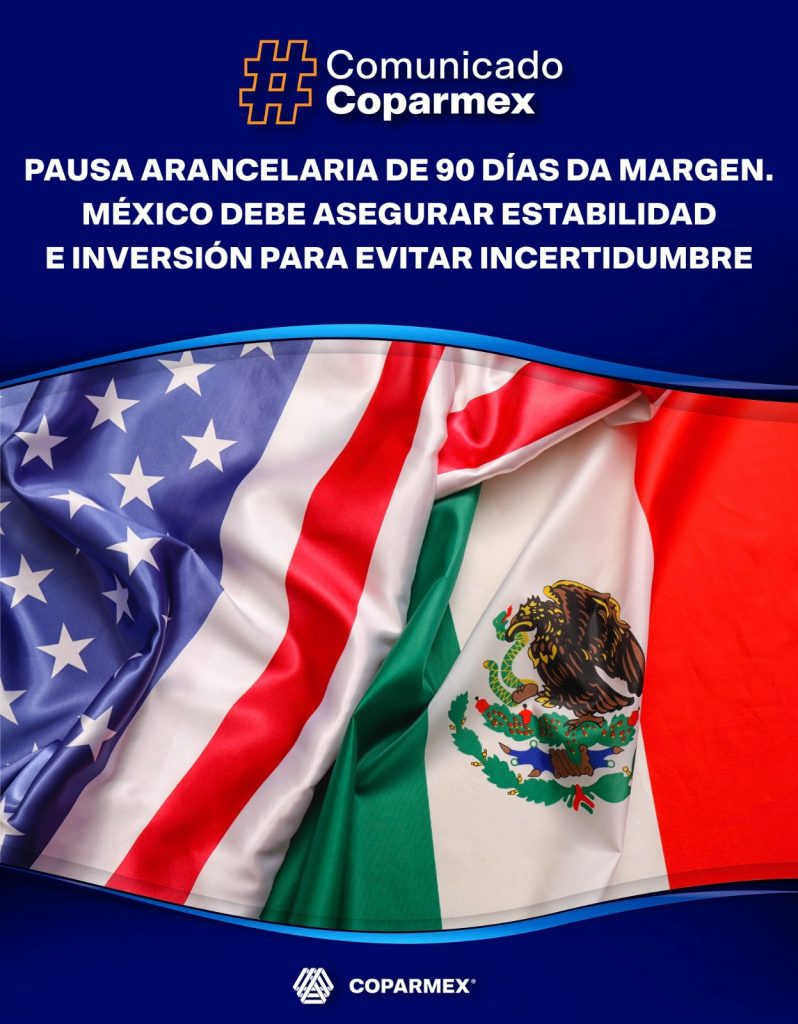 En COPARMEX reiteramos que estos 90 días no son solo una pausa: son una oportunidad estratégica para blindar la competitividad de México y de la región. La estabilidad comercial, la seguridad, la certeza jurídica y la energía confiable son condiciones indispensables para consolidar nuestra posición como socio clave en el comercio internacional y para garantizar el desarrollo económico sostenible para nuestro país.