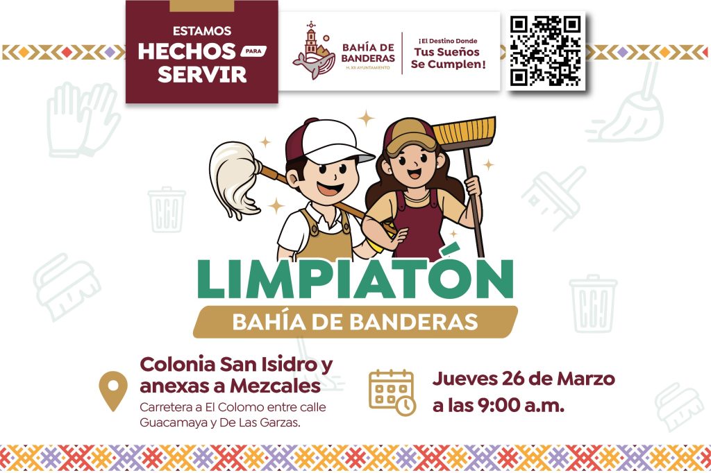 Bahía de Banderas. – Con el objetivo de fortalecer las acciones de limpieza y prevenir enfermedades, el Gobierno Municipal de Bahía de Banderas, llevará a cabo una nueva jornada del programa Limpiatón este próximo jueves 26 de marzo en la colonia San Isidro y zonas anexas a Mezcales.