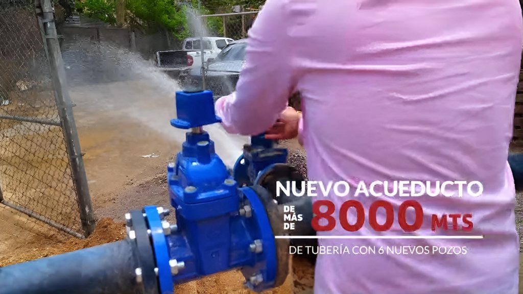 Destaca la construcción del nuevo acueducto, con más de 8 mil metros de tubería y seis pozos, obra que resolverá un problema de años, llevando agua de calidad a Bucerías y extenderá el servicio a La Cruz de Huanacaxtle.