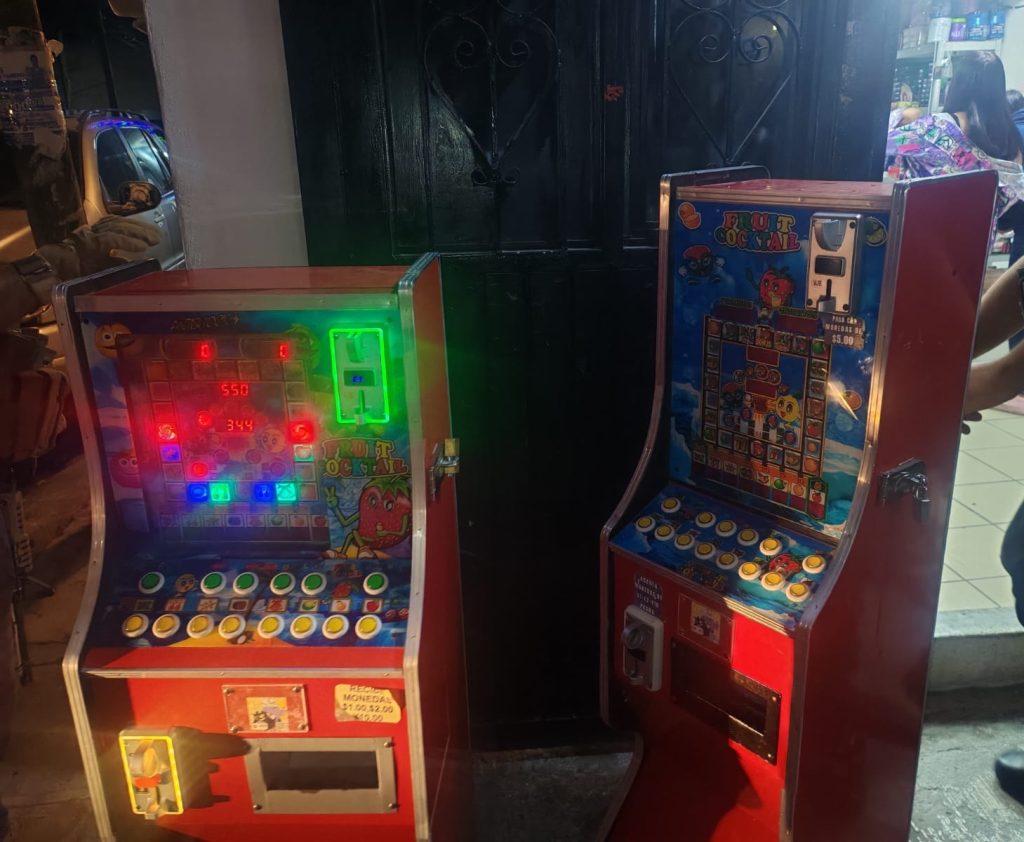 En total fueron retirados del mercado cinco dispositivos electrónicos denominados máquinas tragamonedas con estructuras de madera, que funcionaban en diferentes negocios ubicados en distintos lugares de la ciudad.
