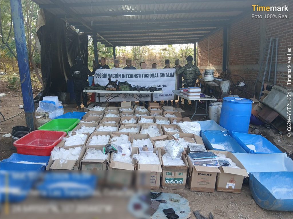 En una primera acción, personal naval localizó y neutralizó un laboratorio clandestino dedicado a la producción de metanfetamina en inmediaciones del poblado de Los Cedritos, Cosalá, Sinaloa.