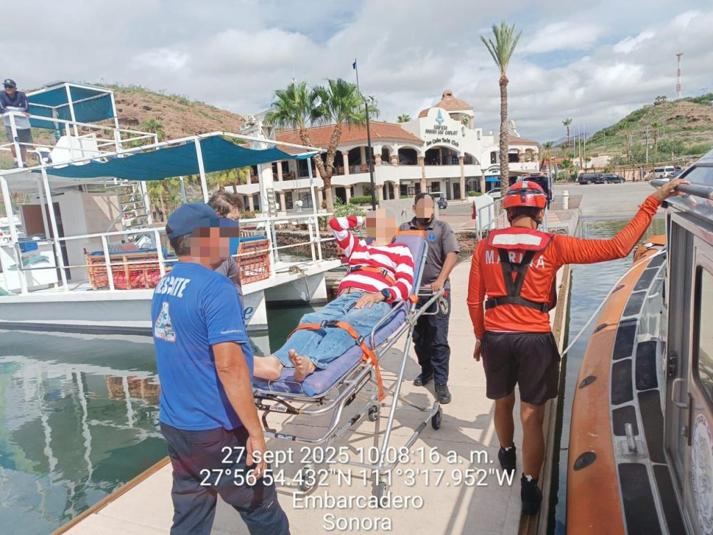 Derivado de lo anterior, al arribar al lugar, se realizó su evacuación y al mismo tiempo el traslado a puerto seguro; la persona fue recibida por una ambulancia de Rescate San Carlos para recibir atención médica especializada.