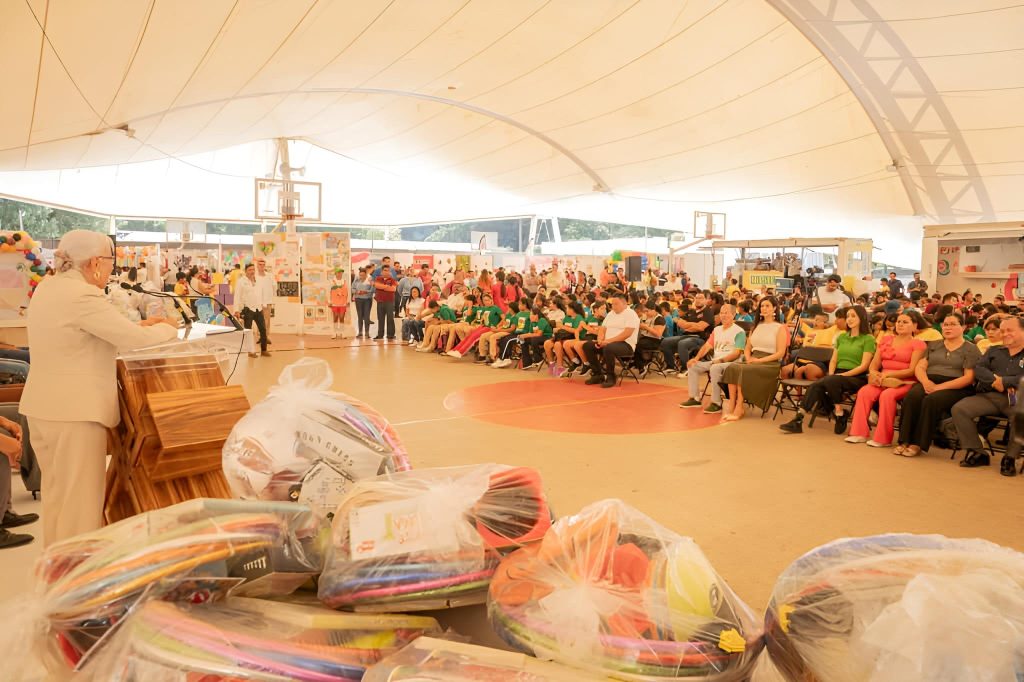Tepic.- Con el propósito de fomentar una alimentación saludable que contribuya al desarrollo físico, cognitivo y emocional de la niñez, la presidenta del Sistema DIF Nayarit, doctora Beatriz Estrada Martínez, encabezó un evento conmemorativo por el Día Mundial de la Alimentación, bajo el lema “Mano a mano, por unos alimentos y un futuro mejores”, realizado en las canchas de básquetbol del parque La Loma.