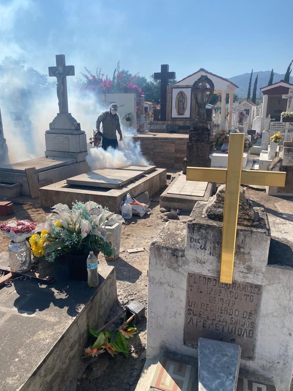 De igual manera, personal del área de Vectores y Zoonosis realizó labores de nebulización en distintos cementerios, con el propósito de disminuir la densidad del mosquito y proteger la salud de la población.