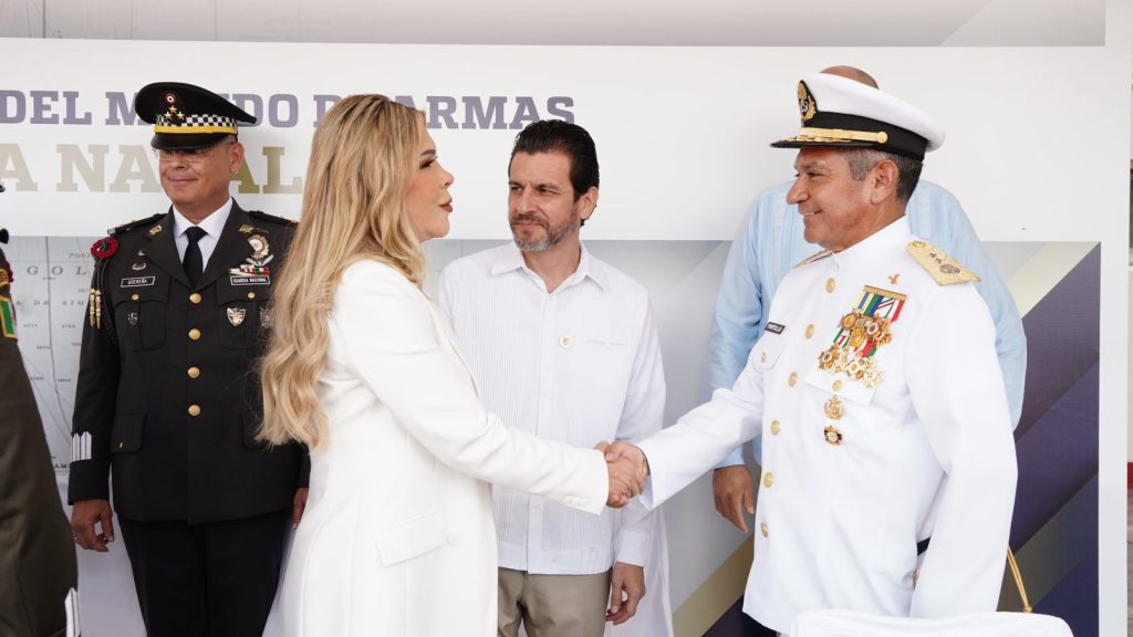 San Blas.- En representación del gobernador del estado de Nayarit, Miguel Ángel Navarro Quintero, la secretaria general de Gobierno, Rocío Esther González García, asistió a la ceremonia de Entrega–Recepción del Mando de Armas de la Décima Zona Naval, con sede en el municipio de San Blas.