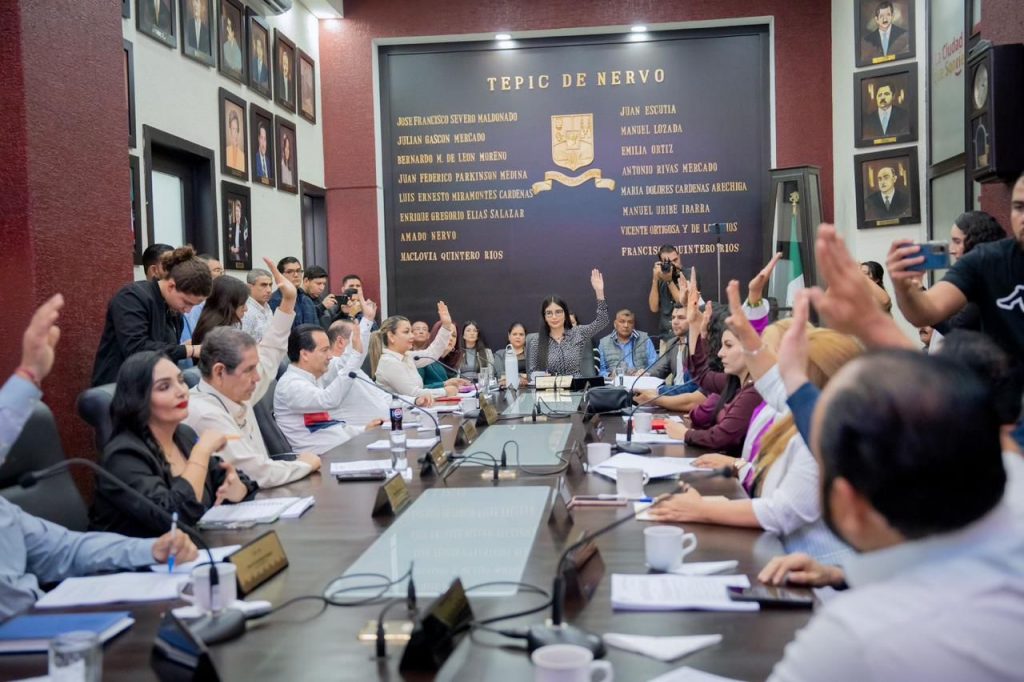 La presidenta municipal de Tepic, Ing. Geraldine Ponce, encabezó la sesión de Cabildo en la que por unanimidad, se votó a favor de la creación del programa de impulso NAFIN + Tepic 2025 «Mujer es poder», dirigido a mujeres emprendedoras.