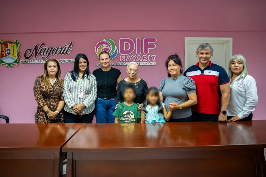 Tepic.-Después de casi cinco años de espera, una pareja de origen cubano —hoy con nacionalidad mexicana y varios años de residencia en Nayarit— pudo finalmente cumplir su anhelo de formar una familia, al recibir en convivencia pre-adoptiva a una niña de 8 años y un niño de 7. La entrega fue encabezada por la presidenta del Sistema DIF Nayarit, doctora Beatriz Estrada Martínez, quien reiteró que el bienestar de las niñas, niños y adolescentes es una prioridad para la institución.
