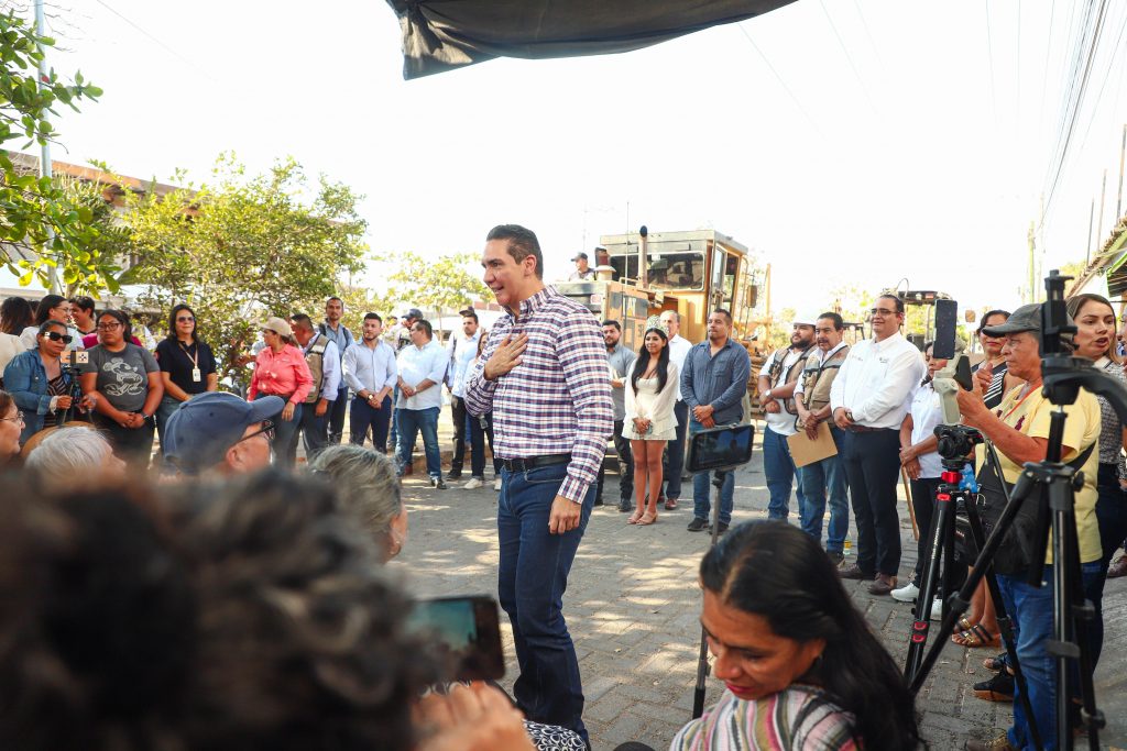 Bahía de Banderas.- La transformación de Valle Dorado ya es una realidad. Este lunes 28 de abril, el presidente municipal Héctor Santana dio el banderazo de arranque a la construcción de pavimento en concreto hidráulico de la calle Valle de México, una de las vialidades más intransitables y urgentes de atender en este fraccionamiento.